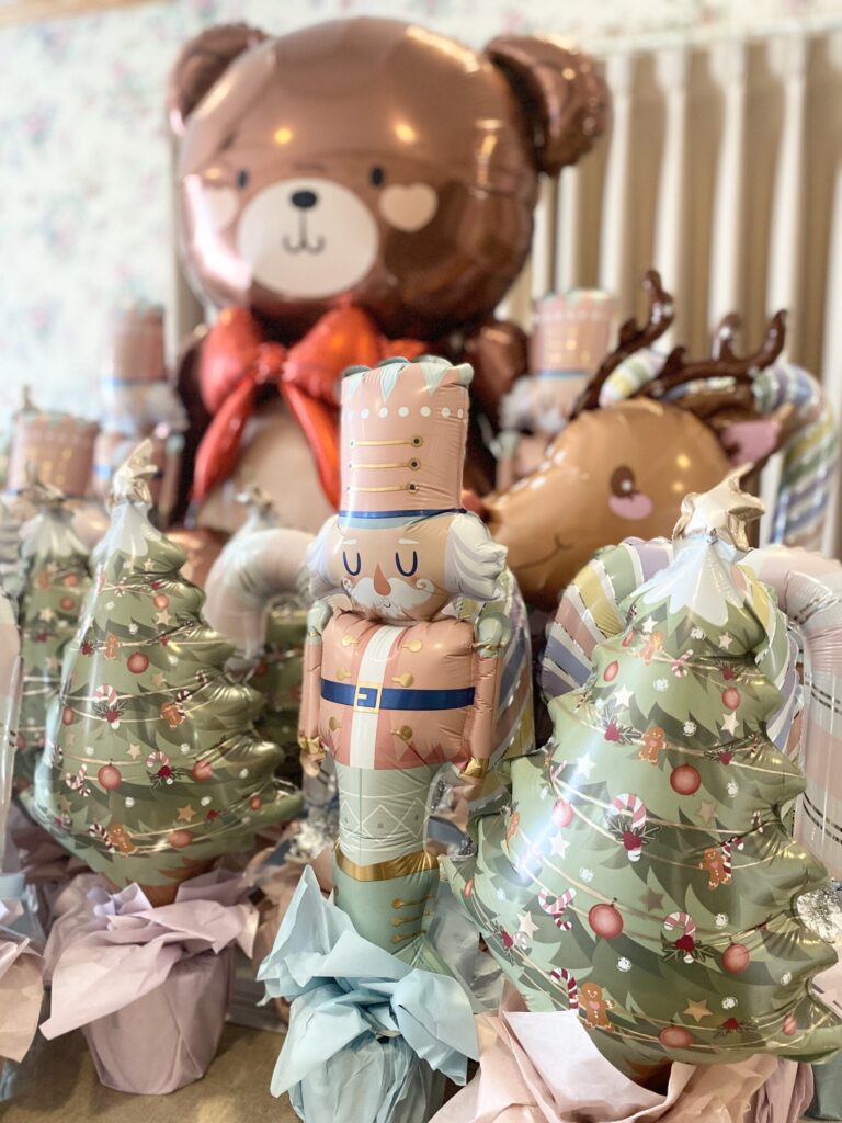 最近は柔らかい色味のクリスマスバルーンが好評です。